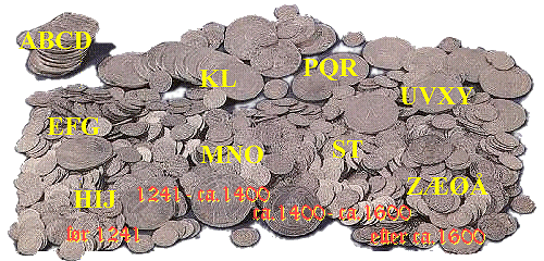 Samlede oversigter over danske skattefund fra middelalderen er: