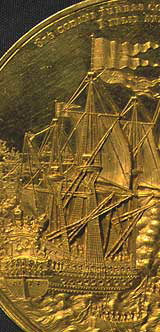 Medailler i anledning af krigsbegivenheder ses hyppigt. Medaillekunsten nåede sit første højdepunkt i renaissancen. Illustrationen viser Schneiders mindemedaille over slaget i Køge bugt 1677, Galster nr. 124.